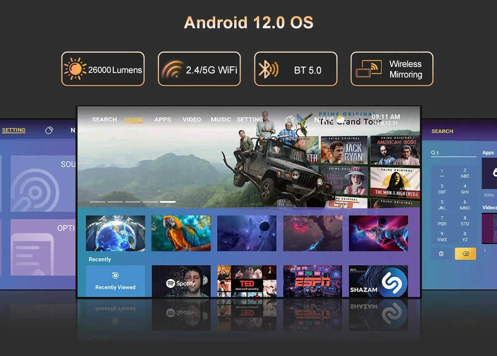 Support BT input and output, you can connect the projector to mobile phones and speakers