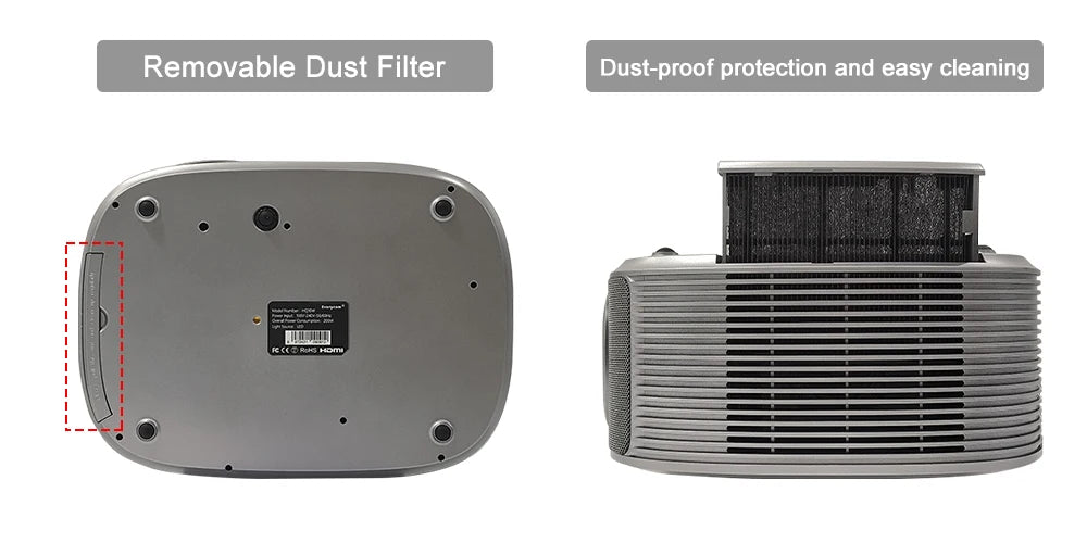 Projection ratio is 1.25:1, the maximum projection screen can reach 200 inches